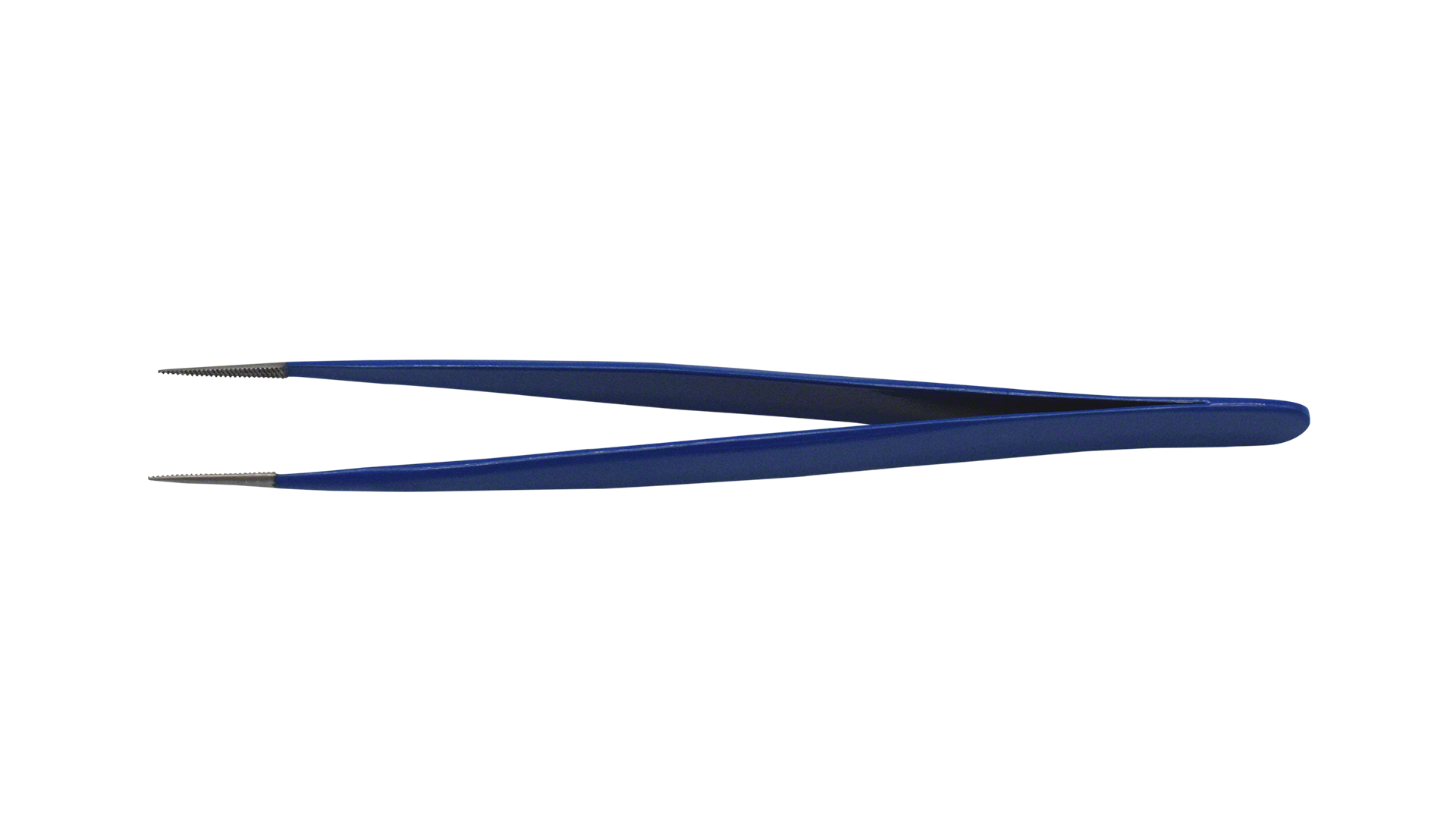 Präzisions- Pinzette aus Federstahl für feine und feinste Aushebe- Arbeiten. Der kunststoffüberzogene Griff bietet sicheren Halt.